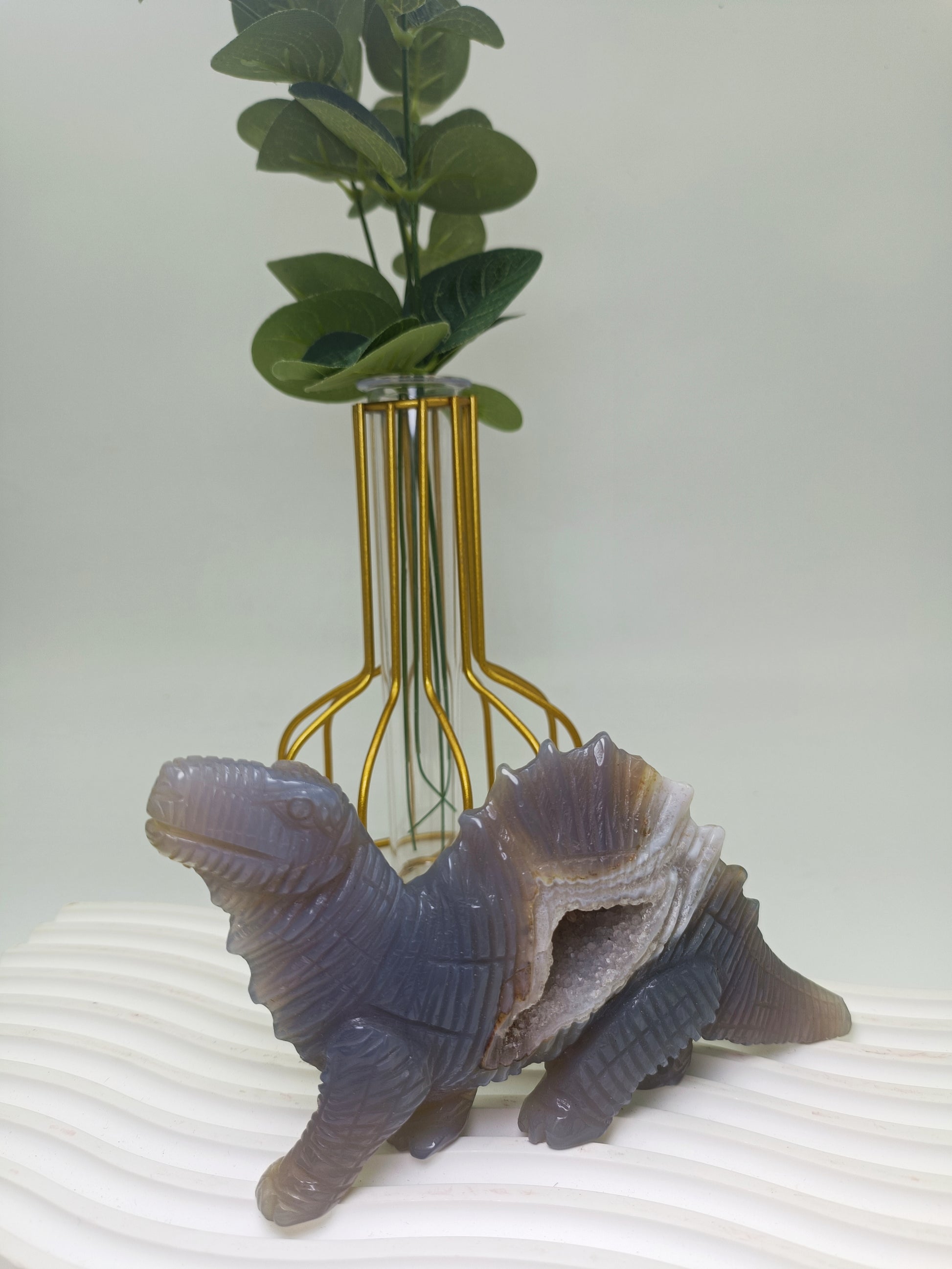 Druzy agate dinosaur carving