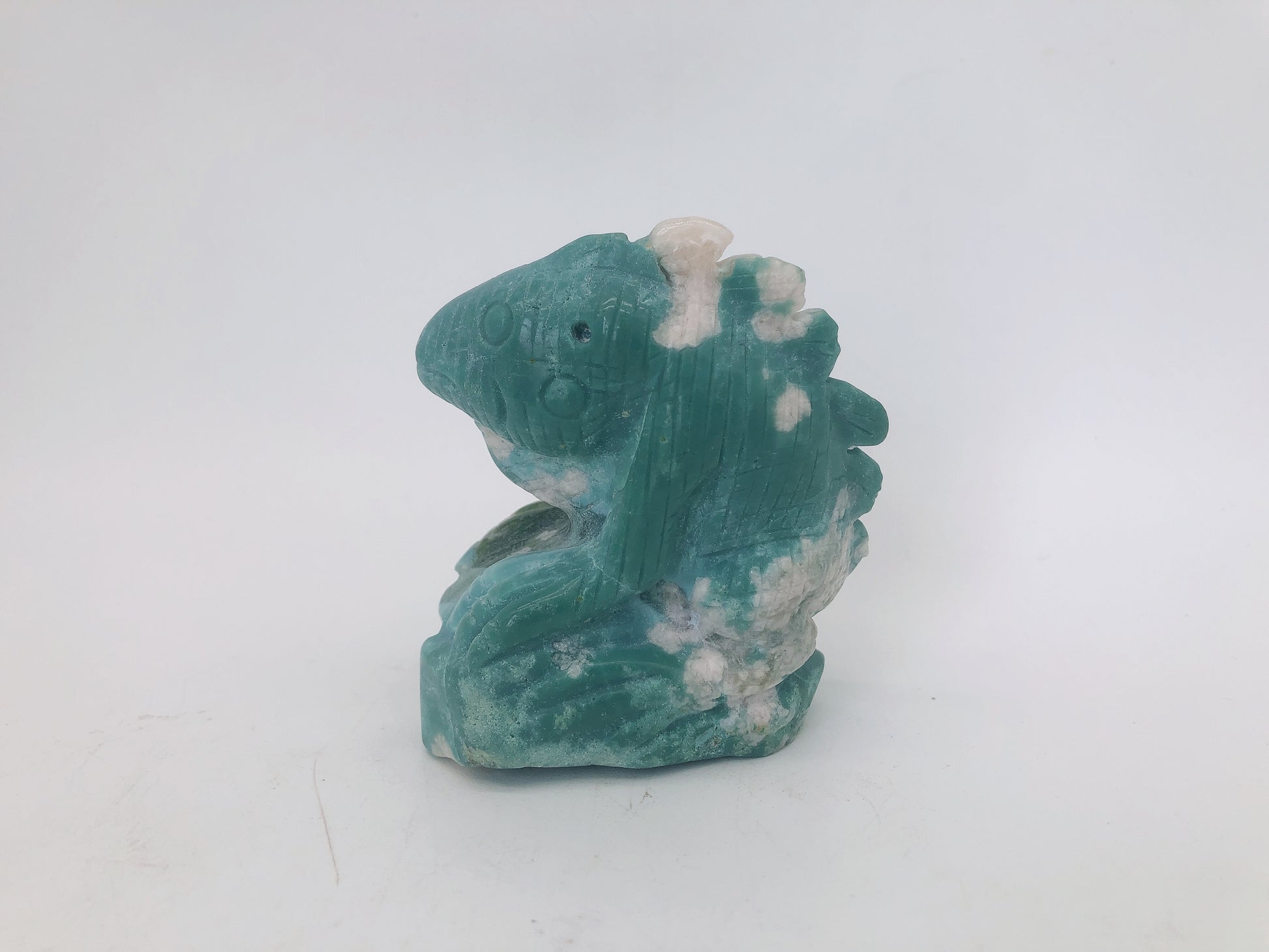 Green flower agate lizard carving