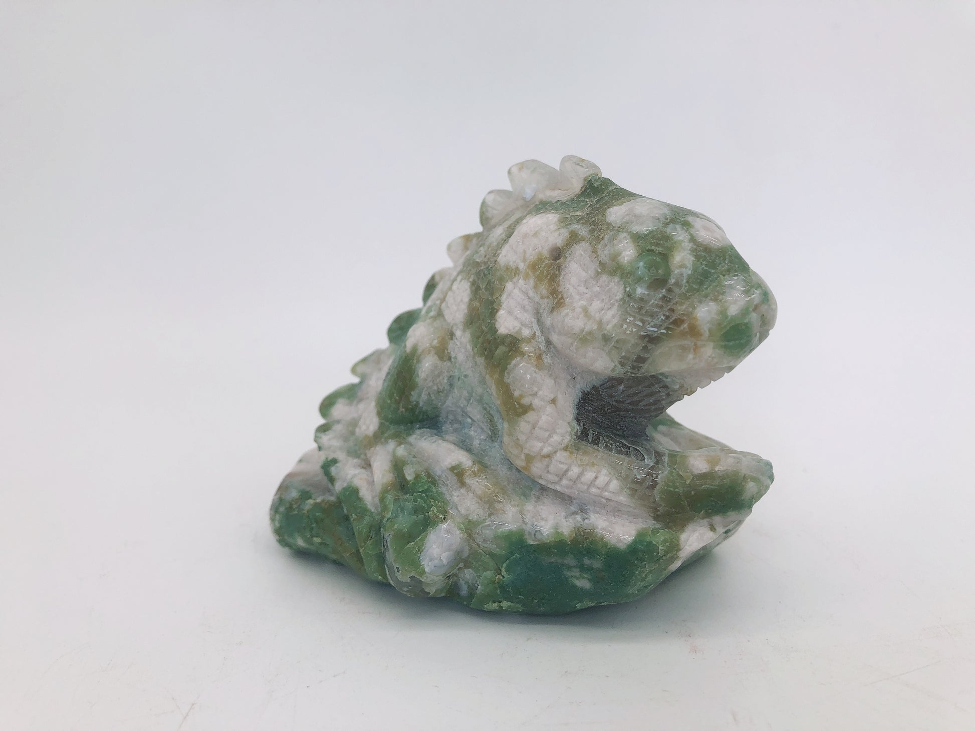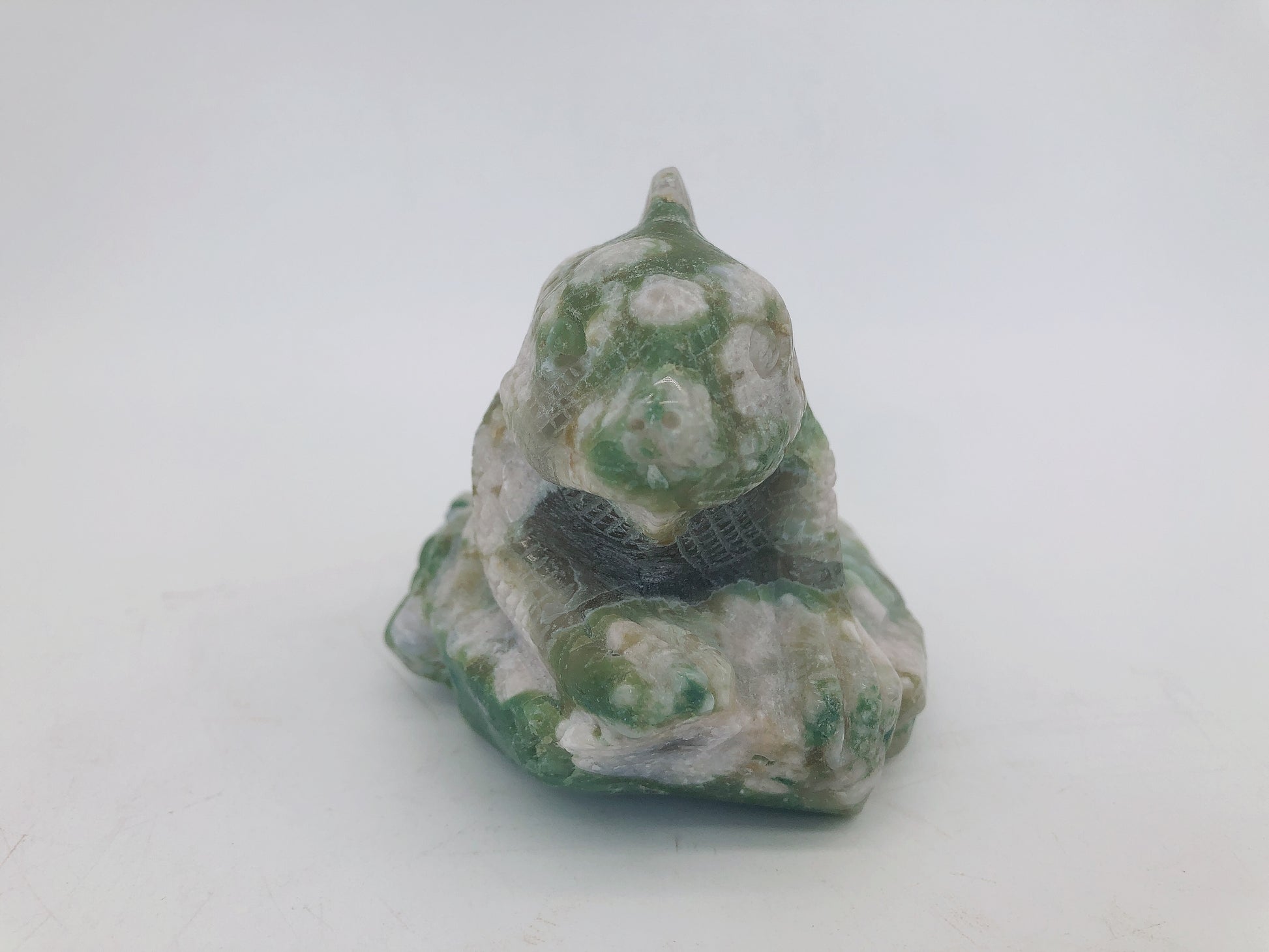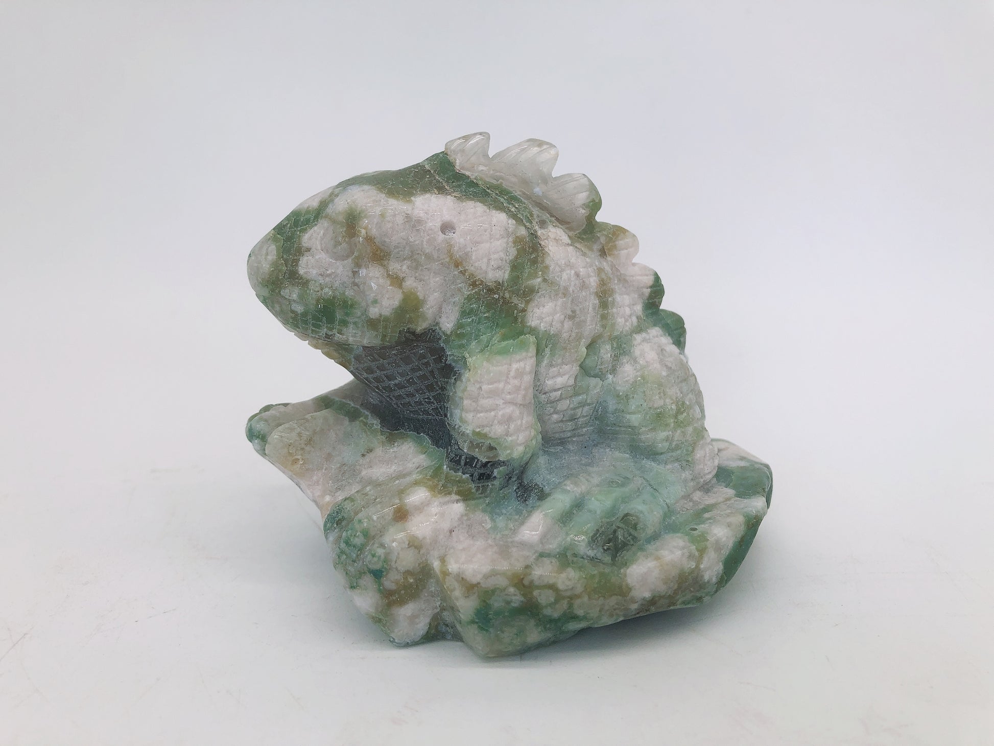 Green flower agate lizard carving